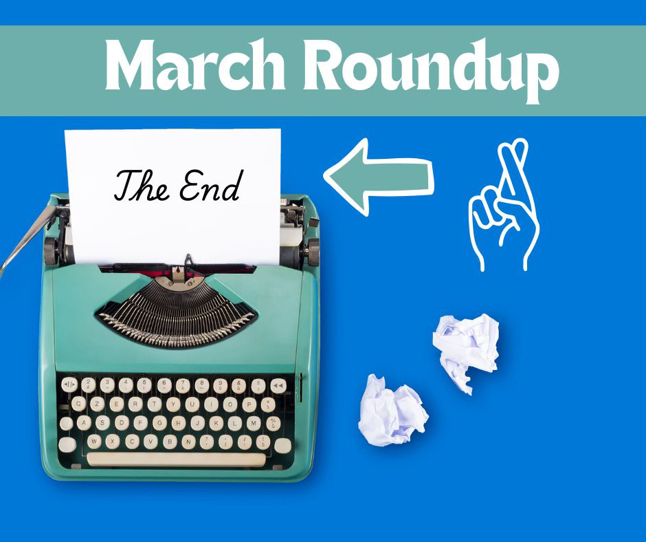 I blinked and March … disappeared. The big news is, I finished a rough first draft of my new novel. I’m now moving pieces around and making sense of things.