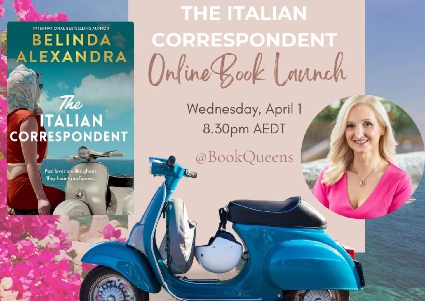 Belinda’s latest novel, The Italian Correspondent is out this week and I’ve read an ARC and LOVE it. I just know everyone else will as well. There will be an online book launch – Sign up to the Book Queens Substack if you’d like to join Belinda, hear from her publisher, and celebrate the release with her.
